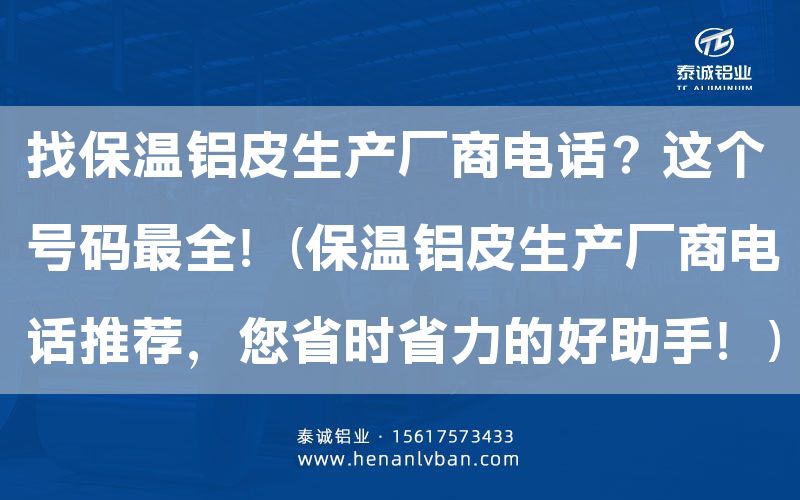 了解保溫鋁皮廠(chǎng)的重要性保溫鋁皮是一種常見(jiàn)的建筑保溫材料,用于建筑物的外墻保溫和裝飾。選擇合適的保溫鋁皮廠(chǎng)對(duì)于保障施工質(zhì)量和工程進(jìn)度非常重要。保溫鋁皮廠(chǎng)電話(huà)是聯(lián)系...